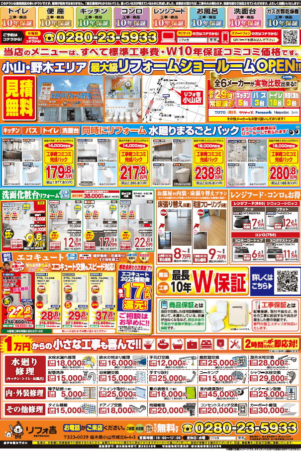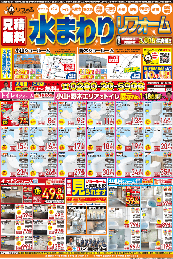 「リフォ吉」では”小山市、野木町、古河市”を中心に、お風呂リフォーム、キッチンリフォーム、トイレリフォーム、壁紙の貼り替えなどお住まいのリフォーム工事を行っています。