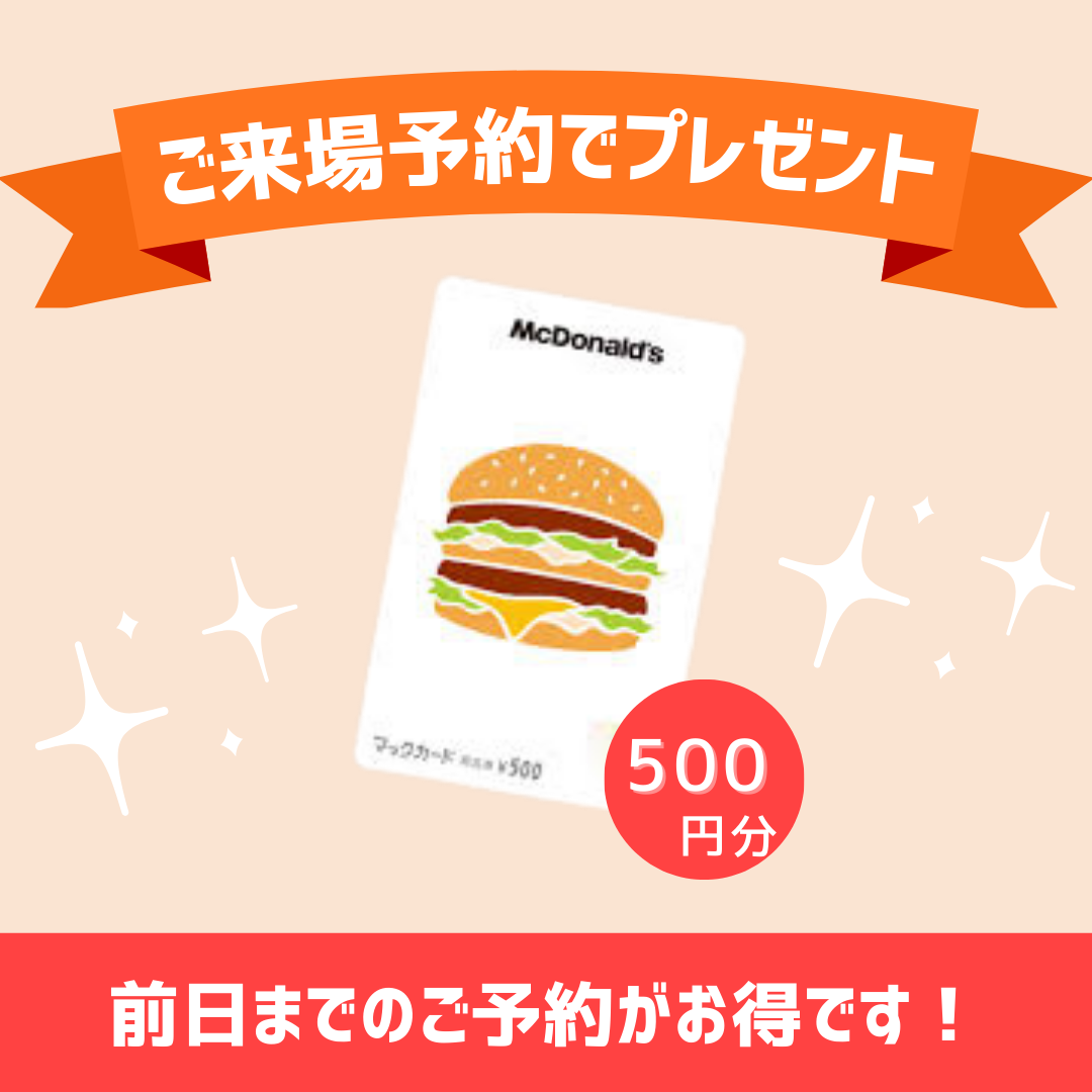 【ご来店予約特典】マックカード500円分プレゼントキャンペーン実施中