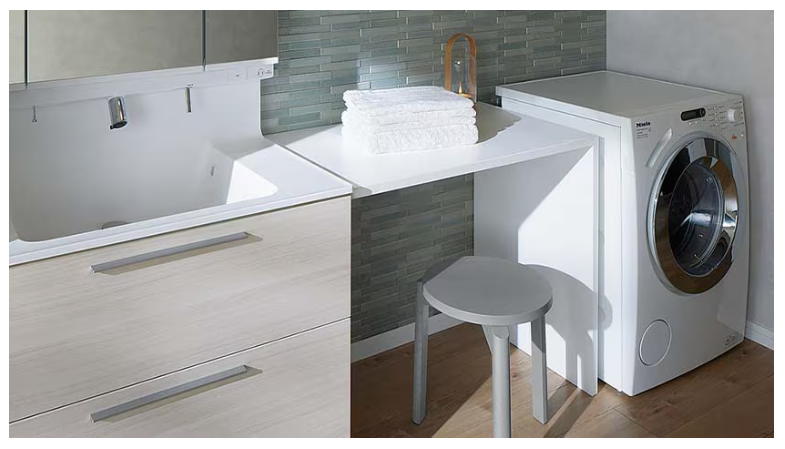 洗濯物を畳んだり、アイロンをかけたりできる作業台を設けると、洗濯家事が洗面所だけで完結し、家事効率が大幅アップします✨