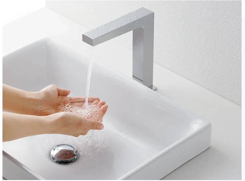 背の低いお子さんでも手が届きやすく、泥だらけや食べものがついた手でハンドルを触らなくて済むので、とっても衛生的です。水の出しっ放し防止にもなります。