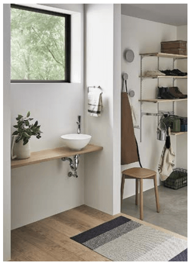 ・プロの視点: 最近では、玄関脇に「ただいま手洗い」を設けるリノベーションも増えています。通り道にあるならば、リビングに入ってきたこどもに「ほら、手洗ったの!?」と毎回口うるさく言わなくて済むんです。ウイルスをリビングに持ち込まない衛生面での安心感も、子育て世代には嬉しいポイントです。リクシルのどこでも手洗なら、丸い手洗器(ボウル)がかわいいですよね☺