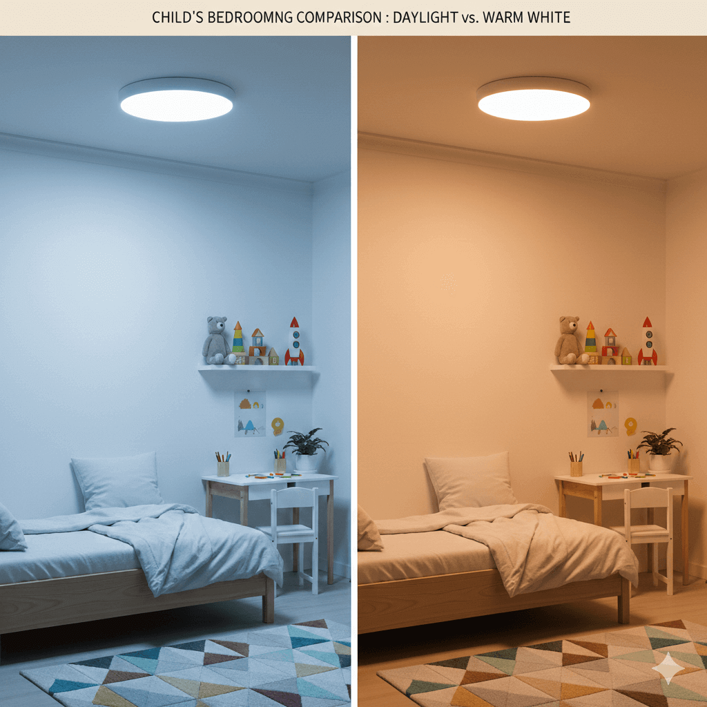 ・体内時計(サーカディアンリズム)を意識した照明: 朝は青白い「昼光色」で脳をシャキッとさせ、夜は温かみのある「電球色」で眠りの質を高める。調光・調色機能付きのシーリングライトへの交換は、手軽かつ効果的なリフォームです。