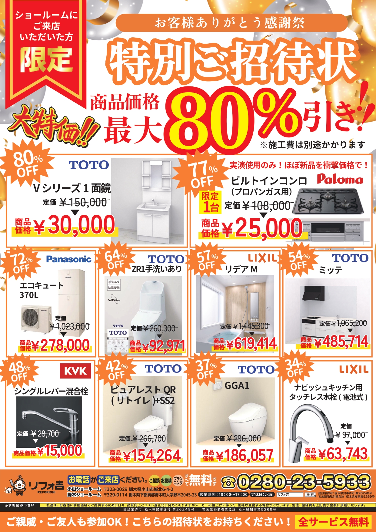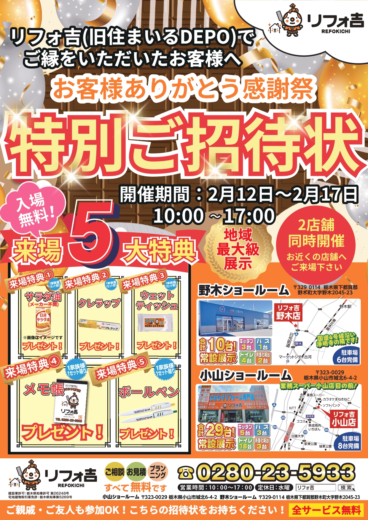 いままで弊社でリフォームのご依頼やご相談をいただいたお客様限定の「感謝祭イベント」を野木SR・小山SRにて開催することとなりました☺!!